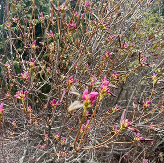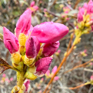 In bloom this week! Rhododendron mucronulatum 'Korean Rosebay' is native to northeastern Asia, particularly South Korea, North Korea, China, Mongolia, and parts of Russia. This deciduous rhododendron typically grows to 4–8 feet tall and produces early-spring blooms in shades of lavender, pink, or purple before the leaves fully emerge.